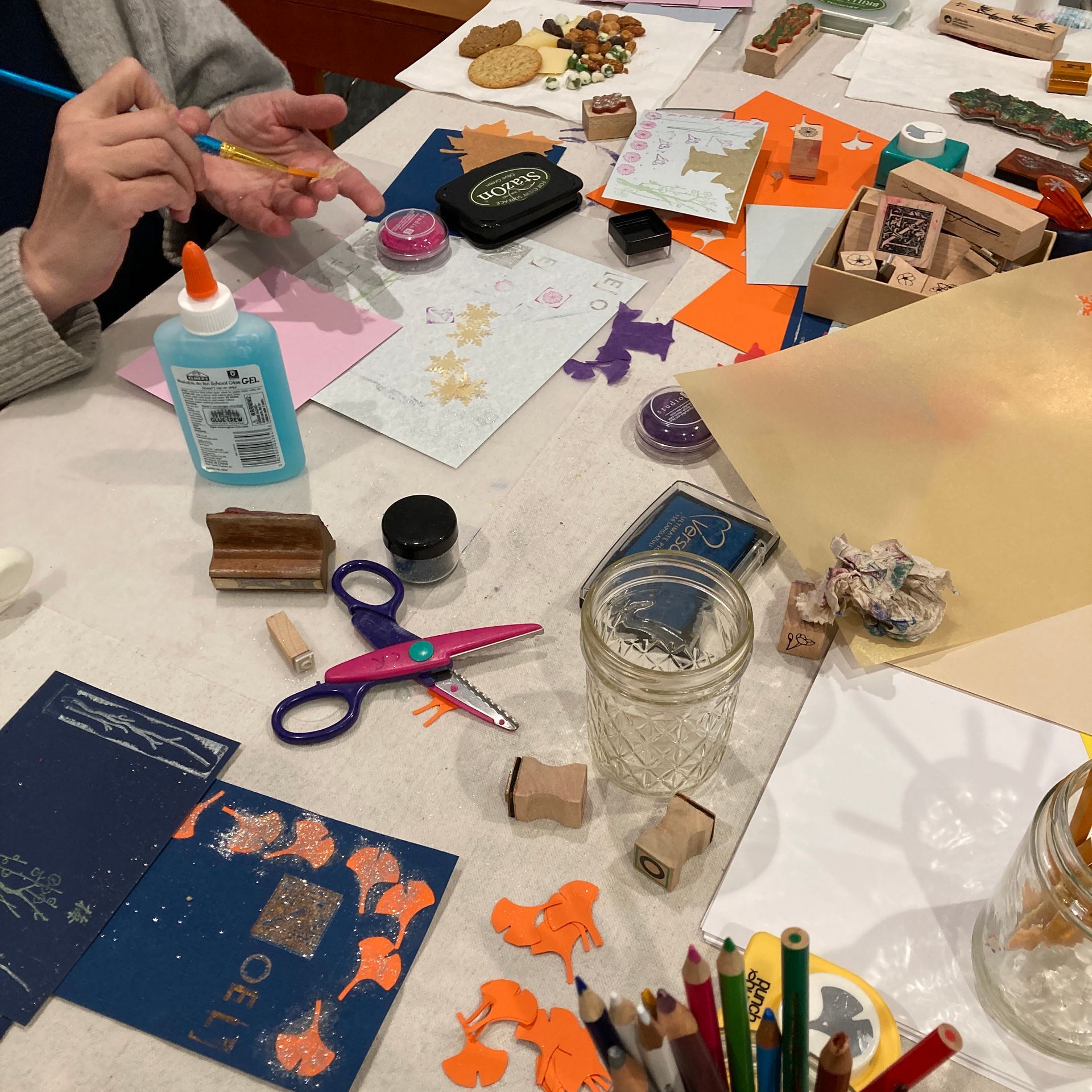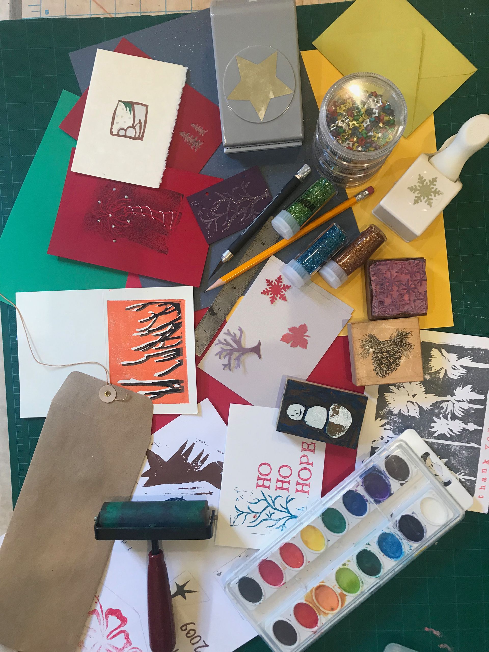 Remember the wonderful and old-timey tradition of handmade cards? Let's get together and make some. We have rubber stamps, paper punches, card stock, paints, markers, sequins, glitter, eyelets and more. I even have some templates to make your own envelopes if you are so inclined :)
